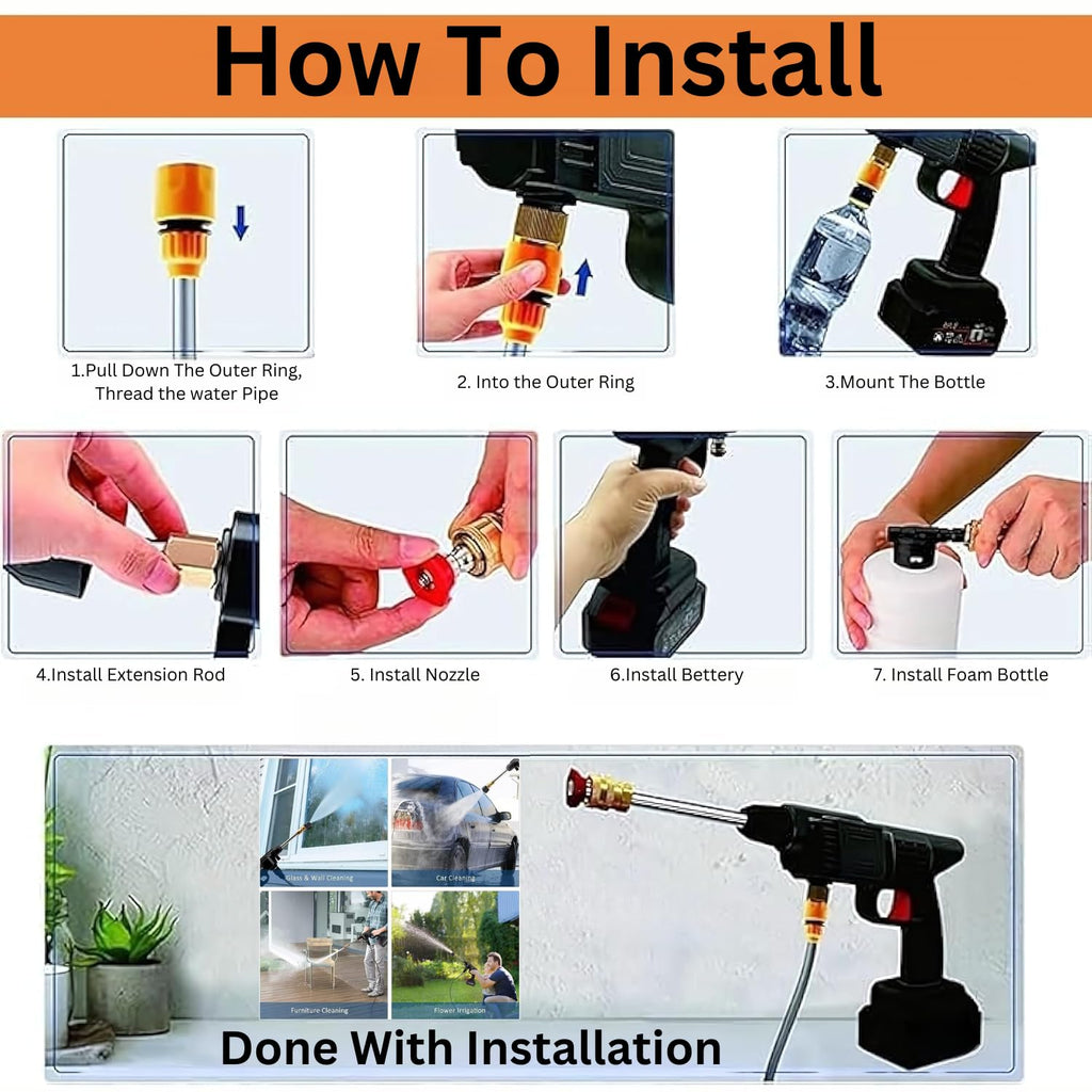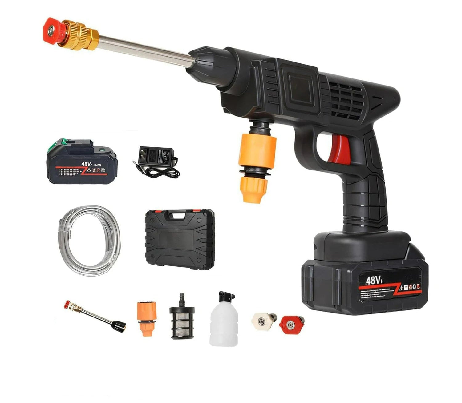 The Cordless High-Pressure Car Washer is the perfect solution for quick, powerful cleaning anywhere—without the hassle of tangled wires or large equipment. This compact washer runs on a built-in lithium battery and delivers impressive high-pressure water flow, ideal for cars, motorcycles, cycles, patio furniture, driveways, or even camping gear.