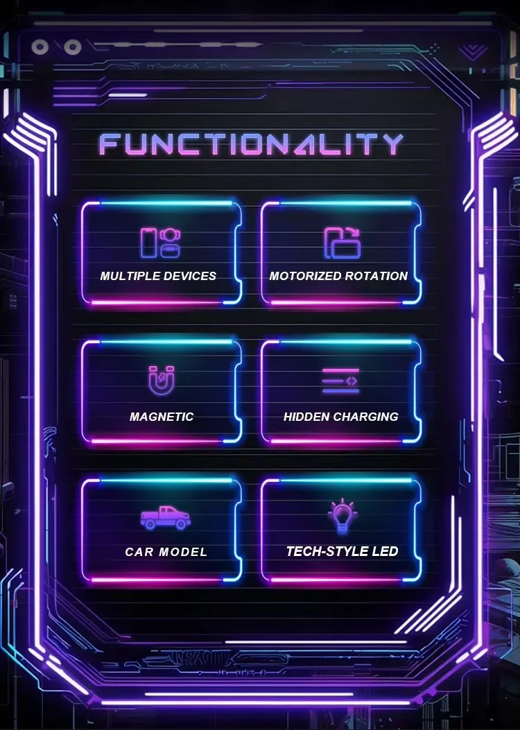 The 2025 Cybertruck Style 3-In-1 Motor Rotating Wireless Charging Station brings futuristic design and smart functionality together in one powerful charging solution. Inspired by Cybertruck aesthetics, this charger features sharp lines and a modern finish that instantly upgrades any workspace.