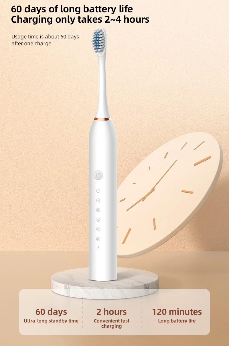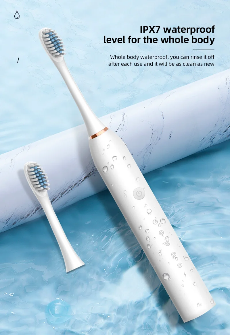 Upgrade your oral hygiene routine with this IPX7 Waterproof USB Rechargeable Sonic Electric Toothbrush—a perfect choice for both adults and kids looking for powerful, comfortable, and deep-cleaning oral care. This sonic toothbrush uses high-frequency vibration technology to remove plaque, reduce stains, and improve overall gum health.