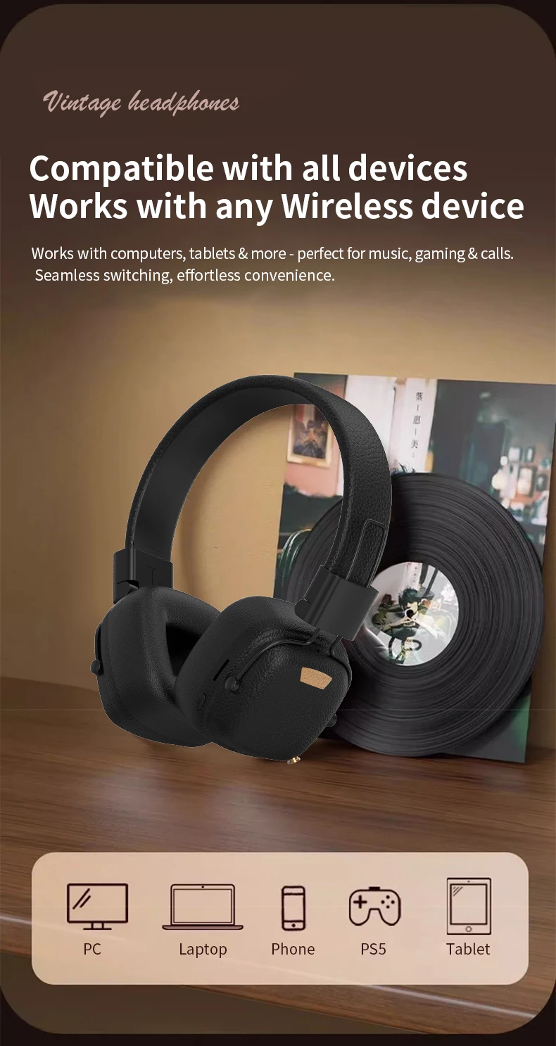 Equipped with Bluetooth 5.3, it ensures stable connectivity, fast pairing, and smooth audio performance. The deep bass stereo sound enhances music, movies, and gaming experiences, while the soft over-ear cushions provide all-day comfort.