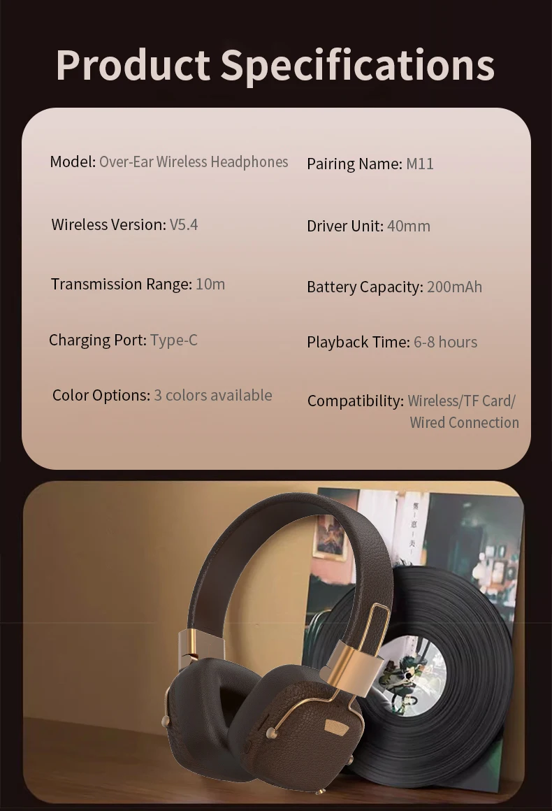 The M11 Retro Wireless Headset BT-11 Marshall Style combines a bold retro design with modern wireless technology. Inspired by classic Marshall-style headphones, this over-ear wireless headset delivers premium sound quality along with a stylish, vintage look.
