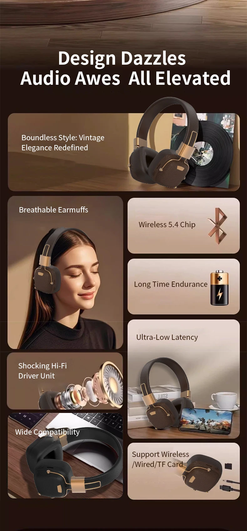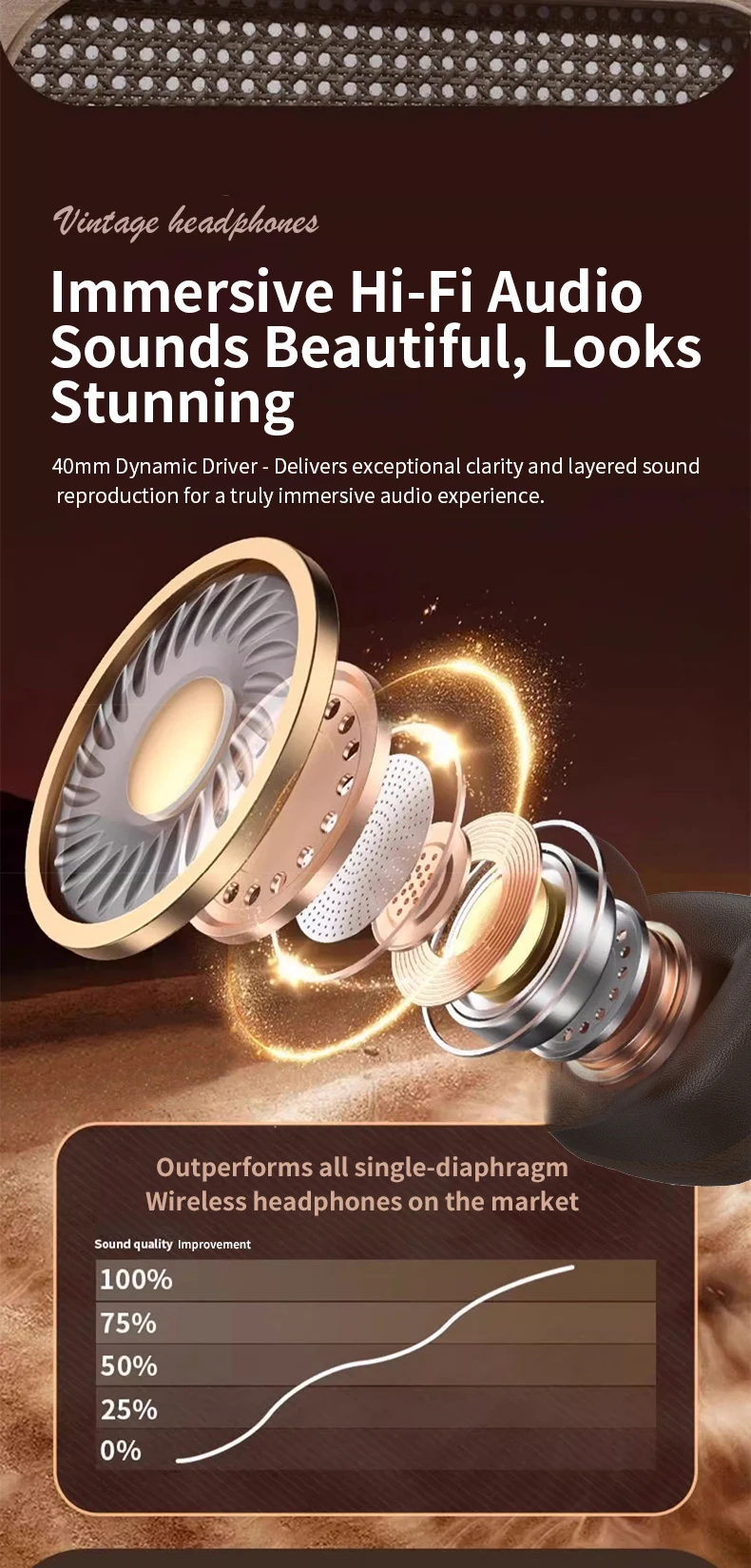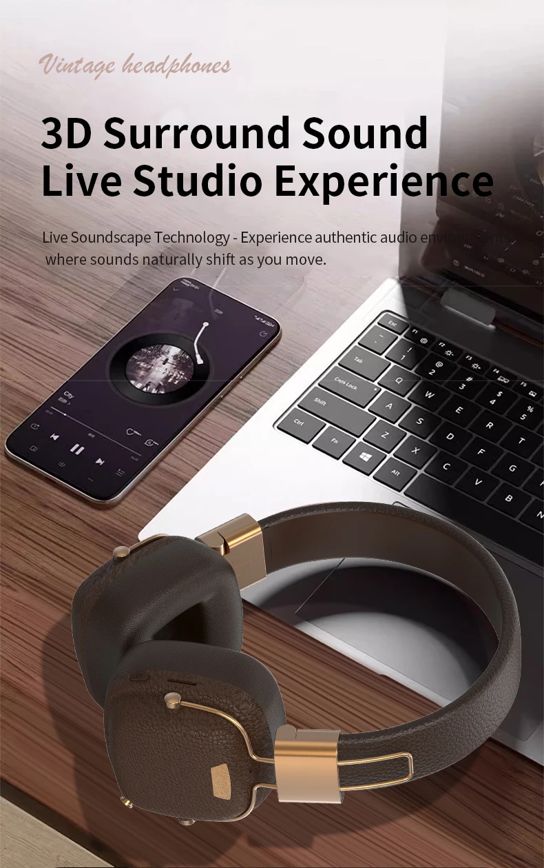 BT-11 Marshall-Style Retro Design – Premium vintage look inspired by classic Marshall-style headphones.