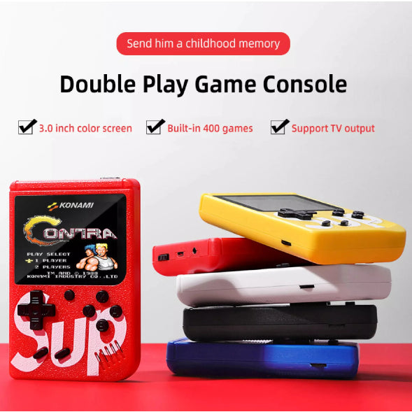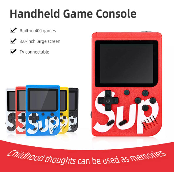 The Sup 400-in-1 Retro Game Console is a pocket-sized gaming device packed with nostalgia. Designed to bring back the golden era of arcade games, it features a built-in library of 400 classic 8-bit titles including Mario, Tetris, Contra, and more — no need for internet or downloads.