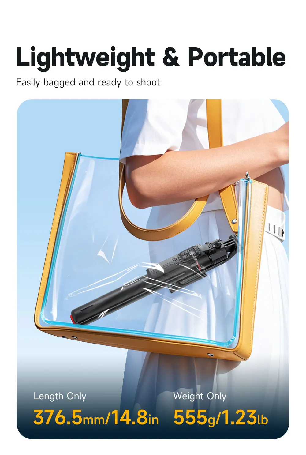 Telescopic 69.3-Inch Height – Adjustable height for wide shots, group videos and overhead angles